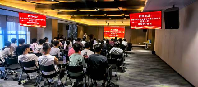 环境工程一班的同学们来到了安徽中环环保科技股份有限公司,在中环环保总部,通过生动的讲解和丰富的展示内容,同学们全面了解了中环环保的发展历程、业务布局和技术创新成果。从污水处理到固废处置,从环境治理到资源化利用,企业在水环境治理领域的全产业链布局让同学们对行业有了更宏观的认识。
