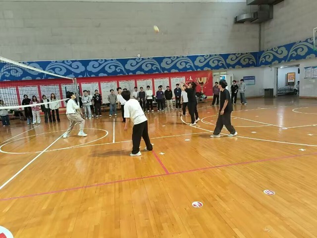 1025日中午1200,生材合院与教育学院的对决激情上演。比赛一开始,赛场瞬间被点燃。双方队员目光如炬,展现出势不可挡的锐气。他们移动灵活,在网前建立了坚实的防线。场上队员不时拉手相互鼓励,传递默契,他们的身影在灯光下划出矫健的弧线,每一个精彩回合都让看台沸腾,欢呼声此起彼伏。