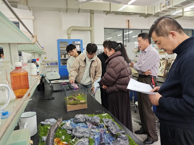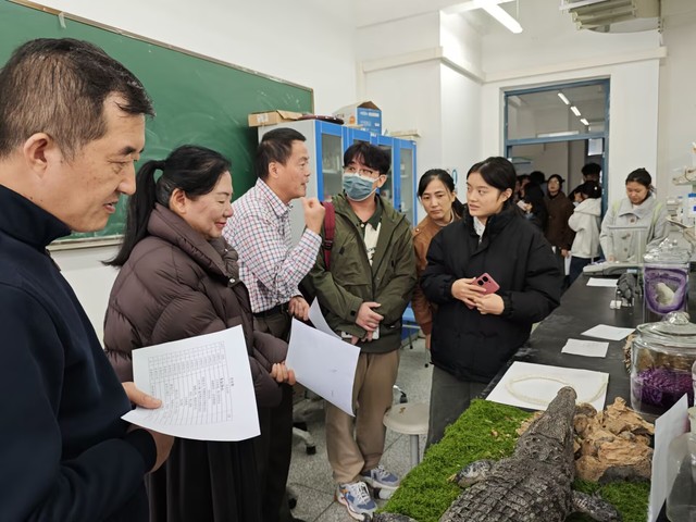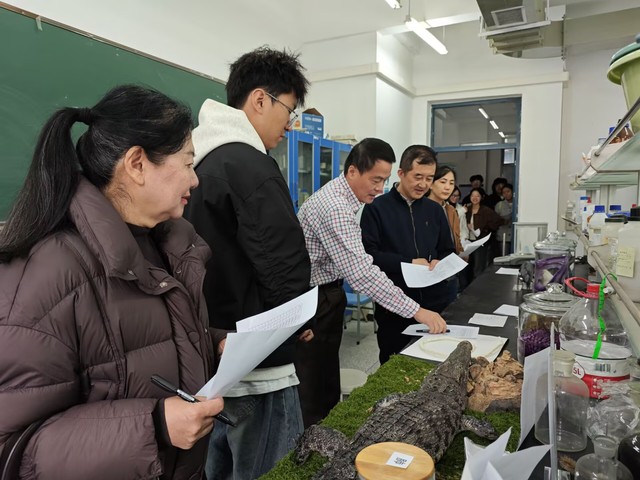本次大赛共分为动物组、创意组、植物组、和真菌组四个类别,吸引了众多同学积极参加,涌现出一大批优秀作品。在动物组中,动物组《河泽古鳞—暹罗鳄的全景展示标本》采用多维度展现手法,全方位呈现了暹罗鳄的心态特征,旨在留住起独特的生命印记。创意组《健藏自然:植物科普手札》则将植物标本与创意手札相结合,打造出一本可读、可赏的立体科普书籍,让植物知识在指尖生动流淌。真菌组《金耳与银耳——真菌界“黄金与白银”》将常见的食用菌金耳与银耳并置展示,凸显起宛如珍宝般的色泽与形态,是科学性与观赏性的完美结合。经过三位专家老师近两个小时的细致评审与现场指导,根据作品的科学性、技术性、创新性及艺术表现力,最终选出四组动物组,三组创意组,一组植物组及两组真菌组晋级省赛。这些作品不仅体现了同学们对专业知识的深刻理解,更展现出同学们融合科学与美学的卓越创新能力。
