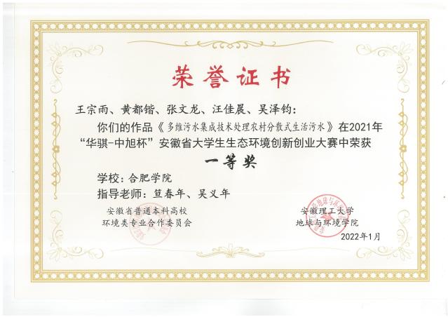 2021年安徽省大学生生态环境创新创业大赛