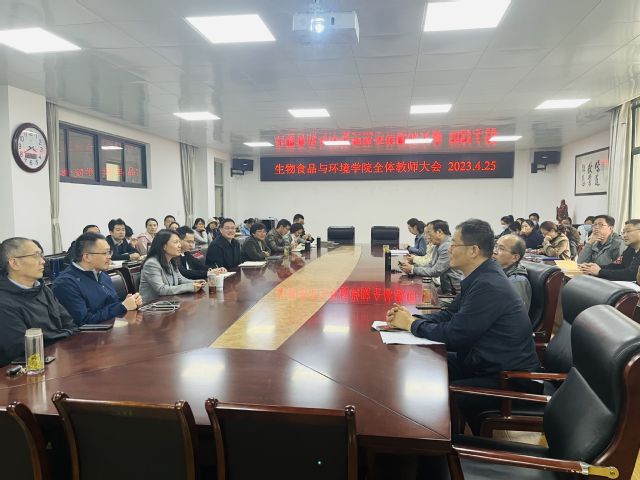为深入开展学习贯彻习近平新时代中国特色社会主义思想主题教育,牢牢把握“学思想、强党性、重实践、建新功”总要求,坚持学思用贯通、知信行统一,做好学院发展工作,提升学院工作质量,2023425日,生物食品与环境学院在生化楼三楼会议室组织开展本学期第三次全体教师大会。生物食品与环境学院全体党政领导、全体教师参与,本次大会由生物食品与环境学院党委副书记(主持工作)李秀娟主持。