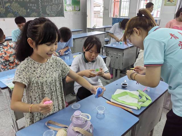 上午8点,调研组一行分成两队,深入“新农村”和“新火村”,积极与当地村支部书记进行交流。他们了解到当地的发展历程和环境整治政策,并参观了当地特色产业。此次调研之旅,成员们更加深入了解到了乡村振兴战略和绿色可持续发展在大演乡的实际应用和可观效果。与此同时,校园组的志愿者们开展了“保护生物多样性,建设环保湿地公园”主题宣讲活动。通过丰富有趣的方式,他们向孩子们普及环境保护要义,并宣传湿地保护与建设的重要性。他们还鼓励孩子们积极参与环保行动,共同建设美丽家园。
