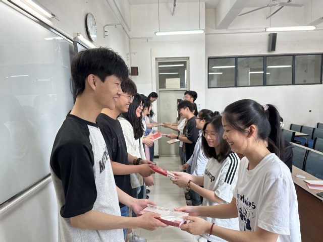 活动中大家共同观看了分别由毕业生党员和非毕业生党员录制的两个祝福视频,表达了对彼此衷心的祝愿和期望。随后葛雪瑞带领支部全体党员重温入党誓词,提醒和激励着党员铭记信念,不忘初心。最后,学弟学妹为学长学姐送上毕业纪念品,完成“接力棒”的交接,并一起合影留念。