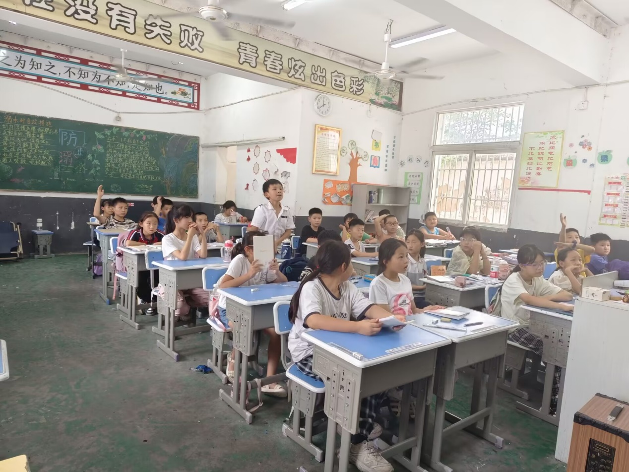 图为颍上县半岗镇侯郢小学学生积极回答问题。中国青年网通讯员刘文婷 摄