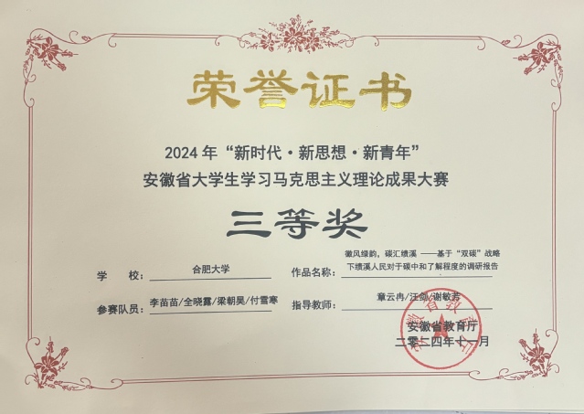 日前,由安徽省教育厅主办的2024年“新时代・新思想・新青年”安徽省大学生学习马克思主义理论成果大赛圆满落下帷幕。我校选送的作品荣获二等奖3项、三等奖1项。