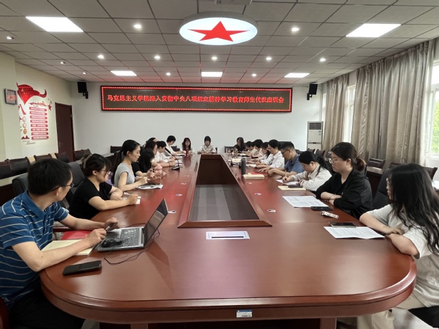 为持续推进作风建设,深化落实中央八项规定精神,5月14日下午,马克思主义学院召开专题学习教育师生代表座谈会。会议由院党支部书记苏冰主持,学院各教研室教师代表及学生代表共20余人参会,重点围绕教风学风建设、思政育人实效等议题展开深入交流。