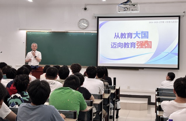 63日下午,校党委书记邬平川来到35-108教室,以“从教育大国迈向教育强国”为题讲授本学期的《形势与政策》课,受到23级网络工程、软件工程和计算机科学技术等班学生的热烈欢迎。