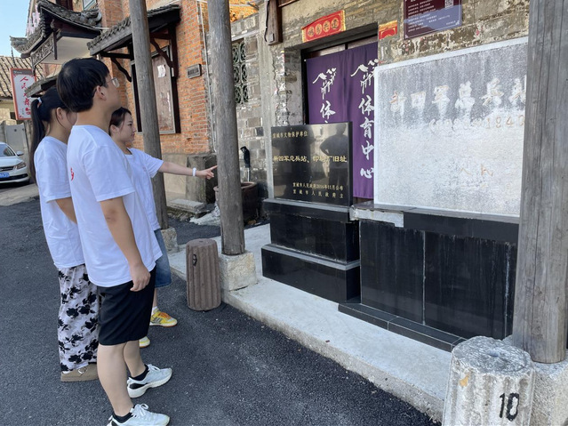 队员们来到新四军总兵站旧址的石碑前驻足观望,石碑后雕刻的文字向队员们介绍着曾经发生在这里的红色故事。古镇的烟火气与革命的硝烟相互交织,历史不再是课本上的文字,而是可感可敬的精神印记,悄然地在每个人心底种下更深刻的家国情怀。