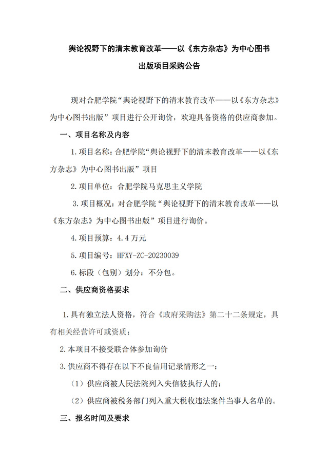 舆论视野下的清末教育改革——以《东方杂志》为中心图书 出版项目采购公告
