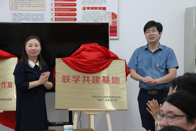 为深入开展学习贯彻习近平新时代中国特色社会主义思想主题教育,进一步提升学校党建和思想政治工作系统化、精细化水平,更好实现全员全过程全方位育人,6月28日下午,马克思主义学院与“一站式”社区全国党建样板支部联合共建揭牌仪式暨主题党日活动在学校三期48号楼一楼“启航”全国样板支部工作室举行。校党委学工部副部长陶龙泽、先进制造工程学院党委书记杜娟、马克思主义学院院长陈志超、马克思主义学院直属党支部书记、副院长苏冰出席仪式,马克思主义学院全体党员教师以及先进制造工程学院机制学生党支部师生党员代表参加活动。