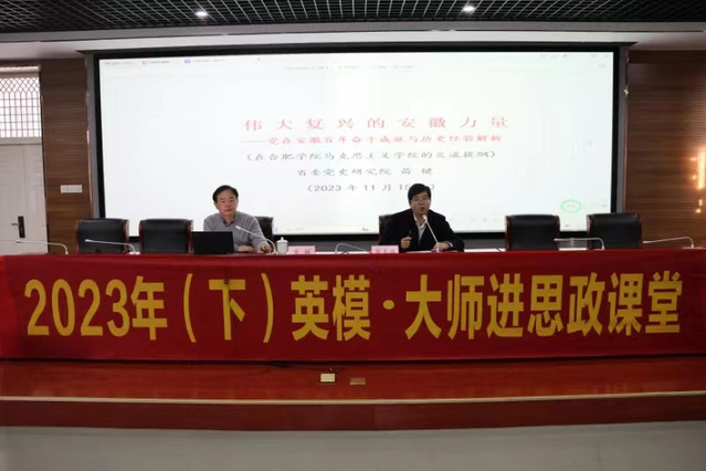 苗键副院长以“伟大复兴的安徽力量——党在安徽百年奋斗重大成就与历史经验的解析”为题,讲解了新民主主义革命时期、社会主义革命和建设时期、改革开放和社会主义现代化建设新时期、中国特色社会主义新时代四个阶段中国共产党在安徽的最基本脉络和最根本特征,阐明了党领导安徽人民百余年奋斗历史成就和历史经验,强调我们更加紧密地团结在以习近平同志为核心的党中央周围,全面贯彻习近平新时代中国特色社会主义思想,深刻领悟“两个确立”的决定性意义,大力弘扬伟大建党精神,勿忘昨天的苦难辉煌,无愧今天的使命担当,不负明天的伟大梦想,以史为鉴、开创未来,埋头苦干、勇毅前行,为实现第二个百年奋斗目标、实现中华民族伟大复兴的中国梦而不懈奋斗。