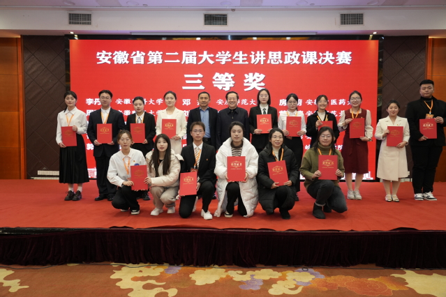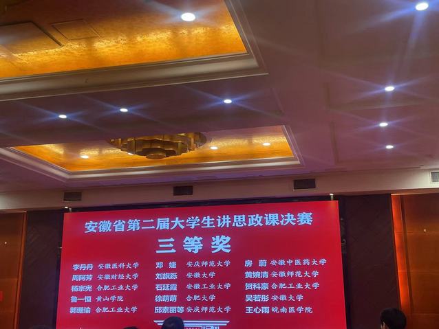 2023年12月22日,安徽省第二届大学生讲思政课决赛落下帷幕。我校徐萌萌团队作品《新思想 新格局 新青年——建设具有强大凝聚力和引领力的社会主义意识形态》(指导教师:苏冰,李雯雯)荣获决赛三等奖。