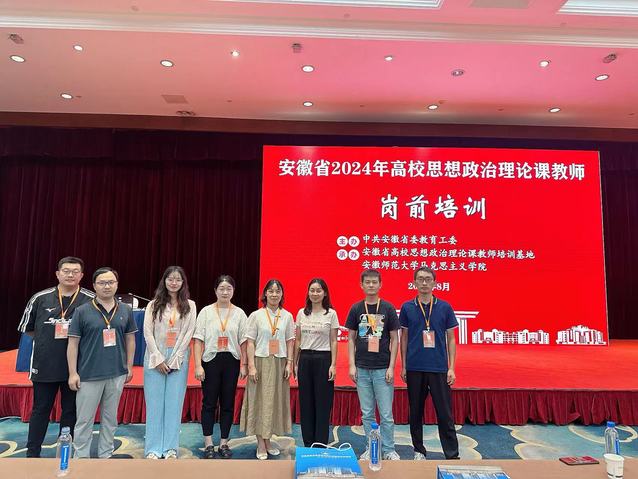8月20—24日,由中共安徽省委教育工委主办、教育部高校思想政治工作队伍培训研修中心(安徽师范大学)承办的高校思想政治理论课教师岗前培训班在芜湖举办,我院8名新进教师参加了此次培训。