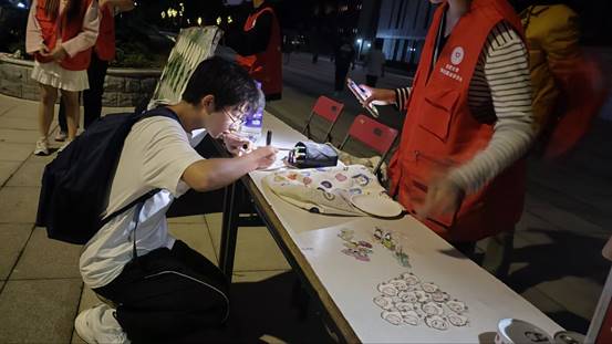 展板活动的现场以“粮食”为主题,参与者需要在纸盘上绘图或手写诗句,粘贴在展板上,完成这一系列后即可参与抽奖。路过的同学们踊跃参与本项活动,在纸盘上用心挑选彩笔的颜色勾勒粮食的简笔画,或是写下与粮食有关的诗句、标语。一幅幅作品,一笔笔勾勒,一句句标语都无一不凝聚着同学们对粮食的敬畏之情,仿佛在诉说着每一粒粮食背后的辛勤耕耘。