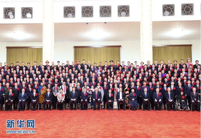 2月25日,全国脱贫攻坚总结表彰大会在北京人民大会堂隆重举行。会前,习近平等会见全国脱贫攻坚楷模荣誉称号获得者,全国脱贫攻坚先进个人、先进集体代表,全国脱贫攻坚楷模荣誉称号个人获得者和因公牺牲全国脱贫攻坚先进个人亲属代表等,并同大家合影留念。新华社记者 鞠鹏 摄