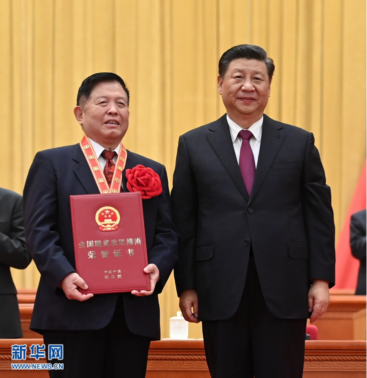 2月25日,全国脱贫攻坚总结表彰大会在北京人民大会堂隆重举行。这是习近平为全国脱贫攻坚楷模荣誉称号获得者毛相林颁奖。新华社记者 李学仁 摄