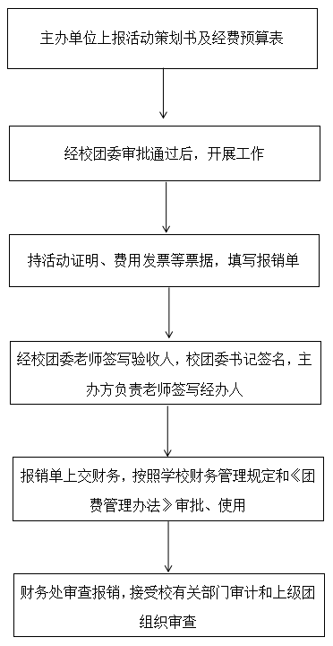 合肥学院团委团费使用流程为:主要活动使用者经手、团委办公室验收、团委书记审核签字审批,方可去学校财务处会计审核之后报销。合肥学院团费使用流程图如下: