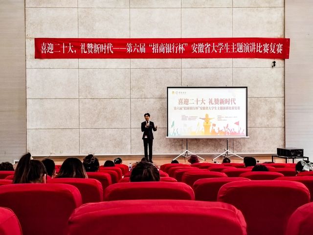 在党的二十大到来之际,第六届安徽省大学生主题演讲比赛在我校举行,既是团省委、省教育厅对我校共青团工作的肯定与支持,也是我校充分发挥高校的文化引领作用,丰富青年学生的文体生活的重要体现,我校将进一步凝聚力量,总结经验,为后期的决赛做好服务工作。(团委)