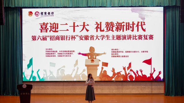9月17日,第六届“招商银行杯”安徽省大学生主题演讲比赛复赛在我校举办。本次比赛旨在学习贯彻落实习近平总书记在庆祝中国共产主义青年团成立100周年大会上的重要讲话精神,团结引领广大团员青年坚定跟党走,以实际行动迎接党的二十大胜利召开。