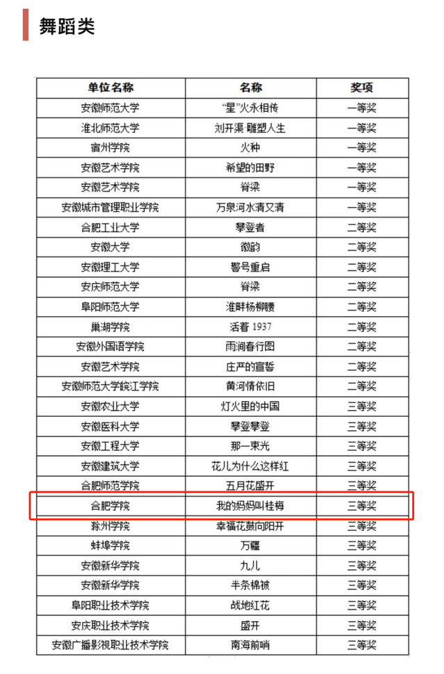 2022年10月14日,安徽省大学生“喜迎二十大”文艺汇演比赛决赛圆满落幕,经过激烈角逐,我校经济与管理学院选送的舞蹈《我的妈妈叫桂梅》荣获三等奖。