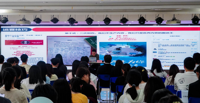 授课以“新时代团属新媒体平台运营探讨”为主题。培训伊始,夏明首先结合自身经历和工作经验,以党徽、团徽等标志的正确使用为切入点,带领培训人员了解新媒体运营的基本工作要求。接着,他通过对各大平台进行分类,分别指出特点讲述平台如何运维。他举例微信运维需要宣传人员团结鼓劲,以正面宣传为主,把握发布、互动、服务、合作这四个运营思路以及时度效,增加平台的吸引力和感染力;抖音运维需要重视视频内容分类,要针对性地对抖音选题进行筛选,重视内容分发机制。在讲述时,夏明配合事例进行讲解,使课堂知识的灌输生动明确。