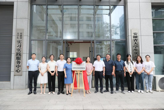 吴孔宝与沈晓琴在实践中心为“合肥学院大学生社会实践基地”揭牌。(团委)