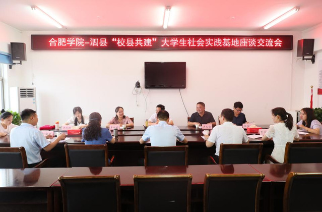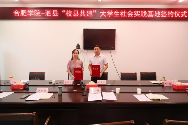7月6日下午,合肥学院—泗县“校县共建”大学生社会实践基地签约仪式在泗县县委组织部会议室举行。泗县县委常委、组织部部长、统战部部长刘朋、县委组织部副部长沈晓琴、团泗县县委书记姚金波等领导及我校党委组织部正处级组织员周全、外国语学院党委书记吴孔宝、团委副书记李妍妍、副处级组织员张海卿等领导及代表出席会议,会议由刘朋主持。