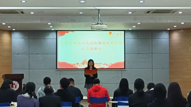 为展示文化艺术节活动风采,营造积极向上、健康文明的校园文化艺术氛围,9月24日,我校在大学生活动中心活动室(一)顺利举办第十九届校园文化艺术节风采展示会。