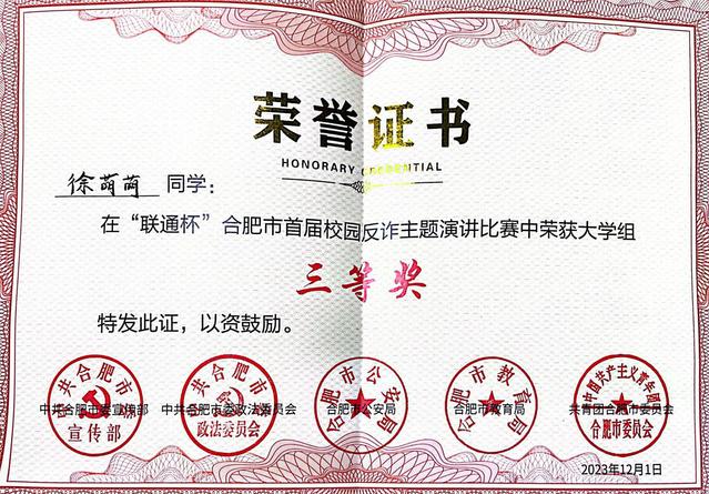 我校学子荣获合肥市首届校园反诈主题演讲比赛三等奖