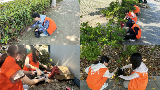 5月6日—5月12日,校青年志愿者联合会组织开展校园美化志愿服务活动。志愿者身于校园清洁、校园绿化、广告清除、废物回收等行动中,为广大师生营造干净整洁、舒适宜人的校园环境。此外,校青志联积极与周边社区对接,为有需要的社区提供环境美化、公益宣传等社会实践活动。活动累计参与人数一百余人,充分展现我校学子对参与劳动实践的高涨热情。
