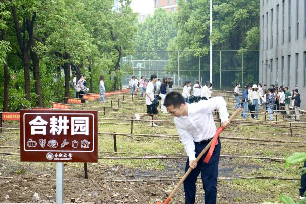 5月11日上午,校团委联合各学院及相关单位开展耕园”项目启动仪式,共同为“合耕园”项目的落地揭牌,现场共有一百余人参加,由各学院团委书记用系有红绸的铁锹为“责任田”锄草松土,未来,各学院将根据实际合理安排校内闲置土地种植蔬果、绿植、花卉等,鼓励广大师生走近自然,争做劳动精神的传承者和发扬者。