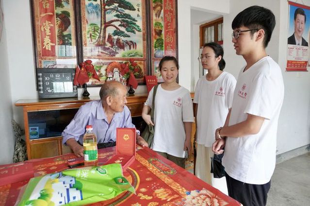 7月10日上午,外国语学院“语”你同行乡村振兴团前往高店镇及其周边乡村走访慰问老党员吴根发、刘万好、徐应宏。拜访过程中,老党员们诉说红色故事,表达对党的崇高敬意、对政府的深切感激。在这条红色寻访之路上,团队成员们感悟红色精神、汲取红色力量、传承红色基因。未来,老党员们的红色基因将继续激励他们携手为实现中华民族伟大复兴逐梦前行,用青春和奋斗续写更加辉煌的篇章。
