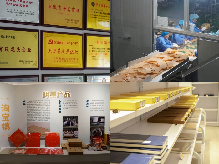 团队成员们走访了云岭锅巴、李园村、宣纸产业园等地,它们以独特的方式,走出了一条条“致富路”。云岭锅巴改良加工方式,为满足多样化的市场需求而制作多种口味的锅巴。李园村把握时代机遇,利用互联网将宣纸等产品销往全国各地。在宣纸产业园内,团队成员们近距离观看了宣纸、宣笔、徽墨等制作过程。“传统产业与现代科技相融合”已经成为当地企业的创业秘诀。