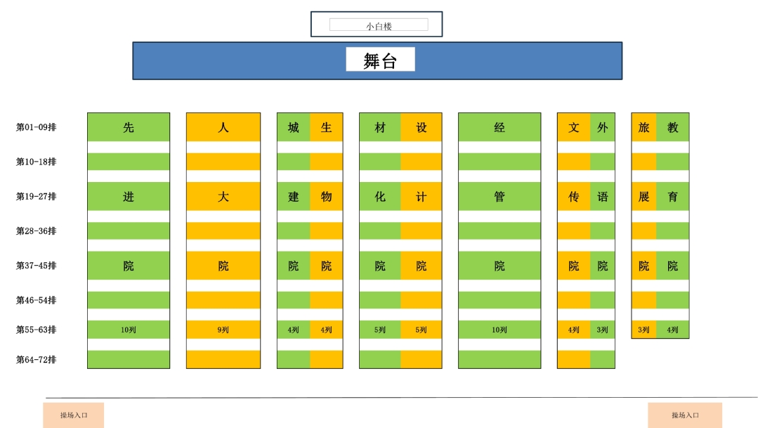 2.各学院新生辅导员须全程参加并在所带班级学生区域就坐,做好学生安全管理和纪律维护。