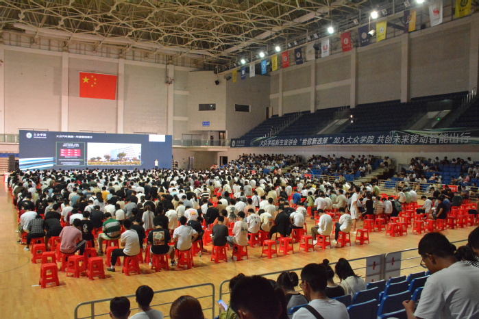 9月14日晚,合肥学院大众学院在二期体育馆举办2023级招生选拔宣讲会,吸引了1600多名理工类专业新生到场聆听。