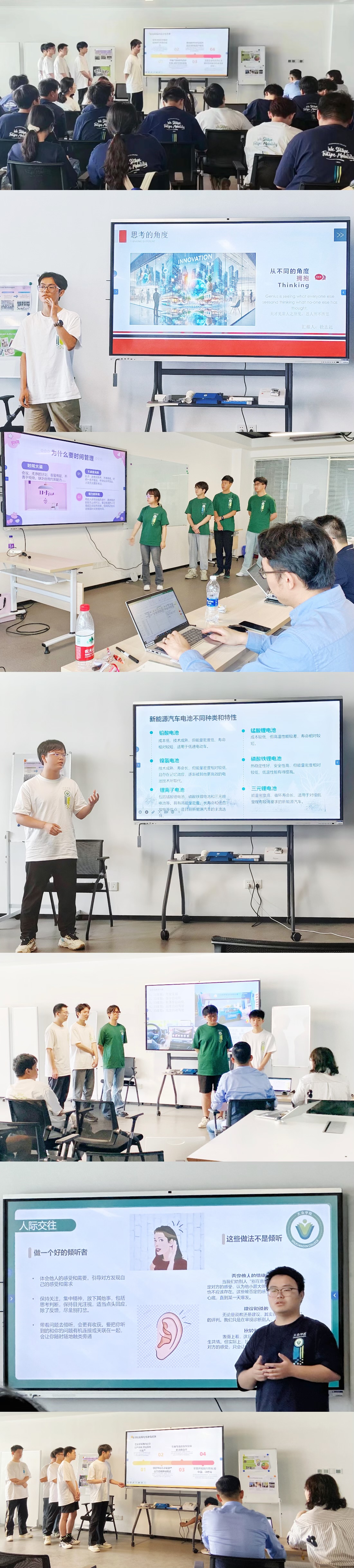 本学期,同学们学习了“大众汽车企业文化”、“大众汽车生产管理”和“个人职业发展”等大众企业课程,深入探索了大众集团企业文化及大众汽车生产管理各环节知识,学习了如何进行高效沟通和时间管理等“软技能”。同学们将这些知识整合,通过团队汇报展示的形式进行呈现分享。在本次汇报展示中,同学们从知识的接收者,变为知识的创造者和传播者。汇报主题涉及了从对创新型思维的理解到新能源汽车技术应用的广泛领域,每一个主题都体现了他们对知识广度和深度的独特理解。汇报不仅展示了学生个体的学习成就,更加凸显了团队合作的力量。