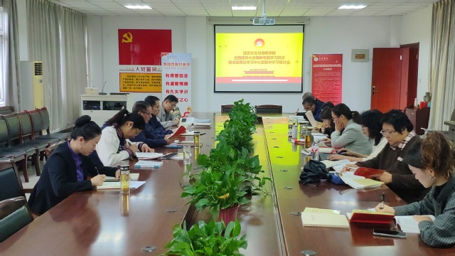 1022日,语言文化与传媒学院党委理论学习中心组在学院大会议室举行学习会,专题学习习近平总书记考察安徽重要讲话精神和全国教育大会精神,学院领导班子成员、党委委员、纪委委员、科级干部及各党支部书记、系(中心)主任参加,会议由院党委书记储昭辉主持。