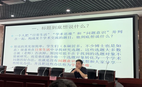 在介绍“学术思维”时,操瑞青教授倡导以更为全面的视角看问题,避免对问题的简单化、片面化处理,力求挖掘问题背后深层内涵与逻辑。同时,指出有必要回溯历史,去探寻现象之所以成为现象背后的过程。