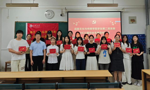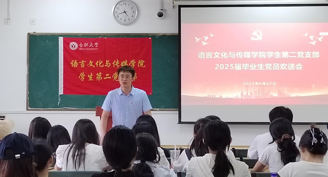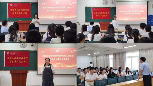 为庆祝中国共产党成立104周年,推动深入贯彻中央八项规定精神学习教育走深走实,近期,语言文化与传媒学院学生第二党支部在5栋309教室召开了2025届毕业生党员欢送会。