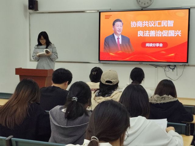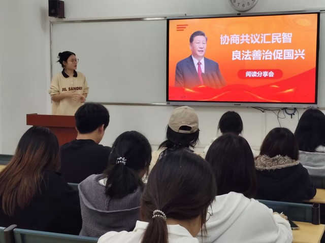 为深入学习贯彻习近平新时代中国特色社会主义思想,提高党员和入党积极分子的理论素养,文化与旅游学院学生第三党支部10月16日组织开展了第十三期读书分享会。活动由支部党员廖盈盈主持,聚焦“协商共议汇民志,良法善治促国兴”主题,重点学习了《习近平谈治国理政第五卷)》第六、七章内容。三名党员和积极分子代表结合专业背景与个人思考作重点发言。