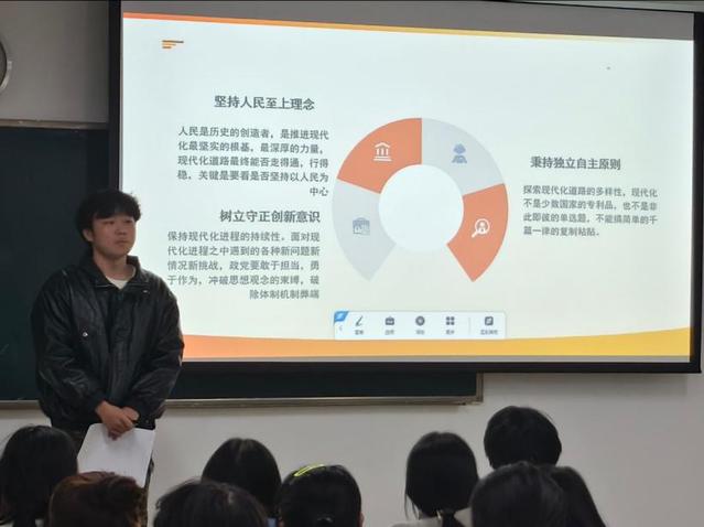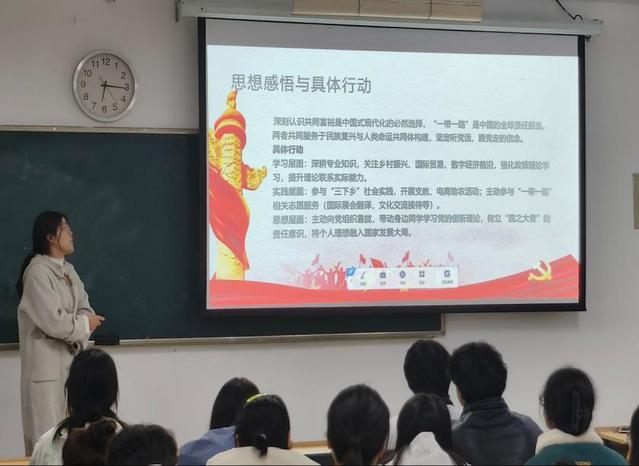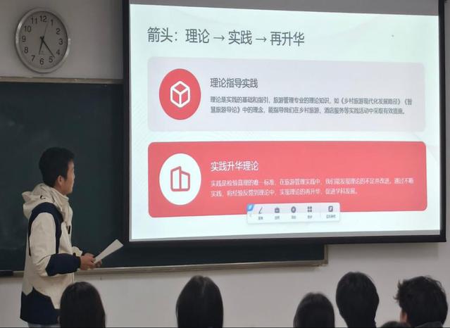 张淑慧围绕“智慧旅游”主题,强调绿色发展、数字经济等新兴领域的重要性。她以浙江共同富裕示范区建设、国家医保谈判、“一带一路”倡议下的中老铁路和中国—中亚峰会为例,阐释观点,并鼓励大家夯实专业知识,投身社会实践,将个人理想融入国家发展。