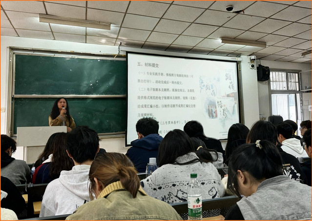 崔璨老师介绍本届话剧节第8至10周举办,以“徽韵青春,文心绘梦”为主题,将专业实践与艺术创作相结合,采用“学、练、展、赛”一体化模式。以专题讲座提供理论支撑,依托校内展演平台,联动校外戏剧周及省级赛事,推动成果从“校内练兵”向“专业展示”延伸,实现能力培养与成果转化衔接。随后,她还就本次活动的考核机制、奖项设置、成绩评分等进行说明。