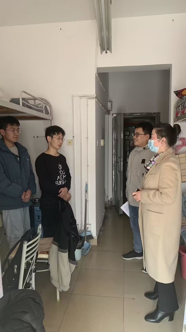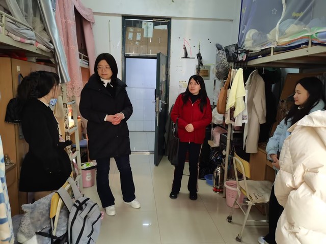党委副书记张爱萍依次来到桂苑1栋、6栋的部分女生宿舍,与同学们亲切交谈,对学生表示关怀和慰问。张爱萍书记提醒大家要自觉遵守学院关于宿舍安全的相关要求,同时也为19级毕业班学生提出了就业方面的建议。