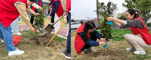 一年时光春最好,植树添绿正当时。在本次活动地点,志愿者们被分为五组,党员志愿者作为领队,各小组井然有序地种植小树苗。期间虽然下着小雨,气温偏低,但党员和志愿者们热情高涨,彼此科学分工、密切合作,挥锹铲土、扶植树苗、培实新土……在大家的相互配合下,一排排树苗迎风挺立。