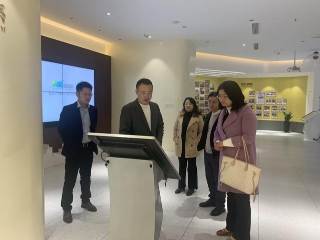 在集团内,我院一行在负责人李明坤带领下先后参观了内部展厅和办公场所,了解集团的发展历史、重点项目。副总监刘高峰对企业基本情况、发展前景、办公环境、荣誉榜单及用人需求等方面进行了详细的介绍。