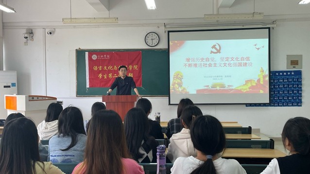 为深入学习贯彻习近平新时代中国特色社会主义思想,523日下午,语言文化与传媒学院在5305教室举行主题教育专题党课,党课由语言文化与传媒学院副院长殷明明讲授,学生第二党支部全体党员参加。