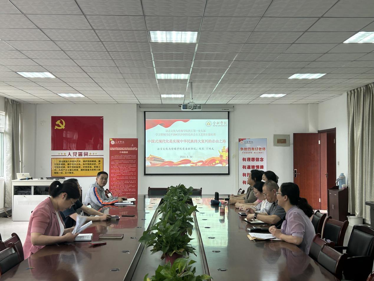 为深入学习贯彻习近平新时代中国特色社会主义思想,5月30日下午,语言文化与传媒学院党委副书记、院长丁增武到教工第一支部为全体党员讲授主题教育专题党课,党课主题为《中国式现代化是实现中华民族伟大复兴的必由之路》。