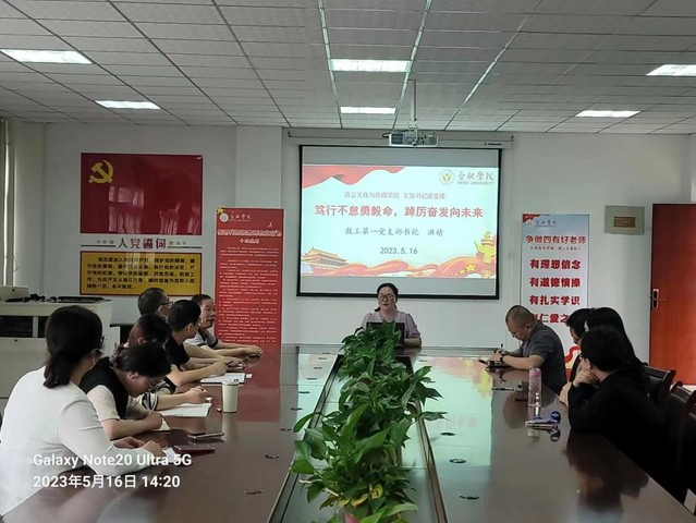为贯彻学习习近平新时代中国特色社会主义思想,进一步加强党员队伍建设,516日下午,教工第一支部在院会议室召开党员大会,开展主题教育集中学习交流研讨会,支部书记洪婧以《笃行不怠勇毅命,踔厉奋发向未来》为题为支部党员作专题党课。