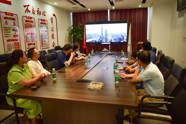 贾峰一行首先在滨湖世纪社区党委副书记倪伟的带领下,走进中建一局第五建筑有限公司安徽分公司参观办公场所并进行座谈交流。公司负责人对我校一行人到来表示欢迎,并通过视频集中展示了公司主营业务和发展成果。