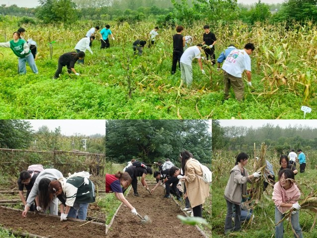 活动伊始,学生在基地工作人员的引导下参观了生态农场。工作人员介绍了大棚实时感应检测、风吸式杀虫灯、智能降温设施等现代化设备,丰富了学生对现代农业科技应用以及马郢数字农业产业的认知。随后在工作人员的带领下,学生分起了小组,并拿起白手套和铁锹积极投入农业劳作,清理杂草、平整土地、点播蔬菜老种子、收割玉米秸秆等,与泥土近距离接触,躬身体验了农业日常,实地上了一次劳动实践课,现场气氛热烈。